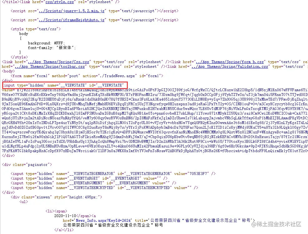 由于不知道__VIEWSTATE那一长串是啥,所以一开始没有发送这个数据,结果发现每次请求返回的数据都是第一页,这有点把萌新难住了,差点就要用第二种方式selenium模拟点击按钮来实现了。