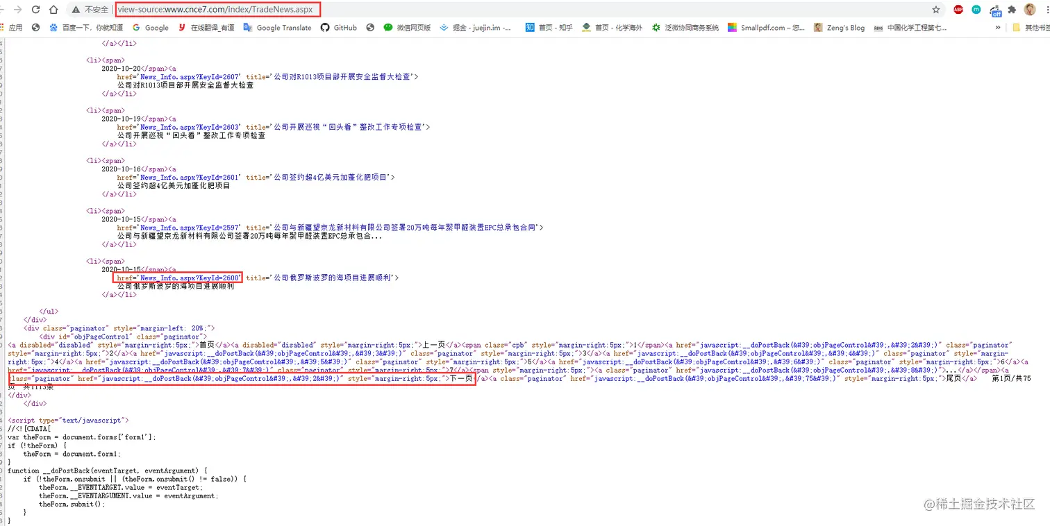 我们可以发现点击翻页的时候刚好有一个TradeNews.aspx的请求,刚好对应上边的form action