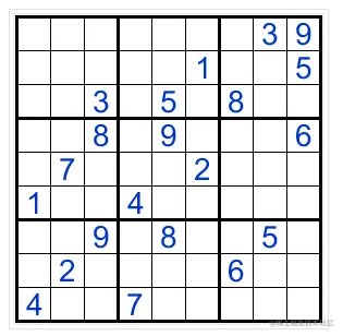 最后,我在这里分享给大家一个很难很难的数独,欢迎大家来挑战!!挑战成功的,评论区留下你的答案!