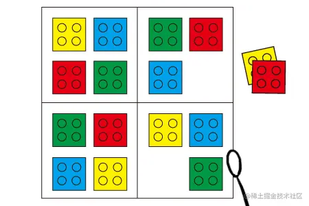 其实很容易理解:我们把上面的第6行5列代入到这个公式里,(5 / 3) * 3 + 4 / 3 = 3 + 1 = 4。这个 4 也就代表最终落到 4 的这个小区域中。