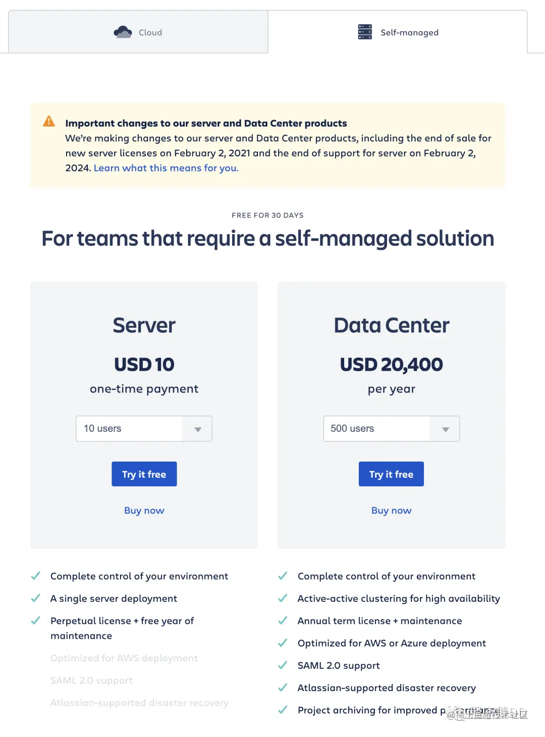 对于创业团队、中小企业来说成本剧增!如果不考虑云上版本的话,就不得不考虑500人版本的私有化服务。原本一个10人初创团队只需要10美元一年的软件成本将飙升到20400美元!简直就是在劝退中国玩家?