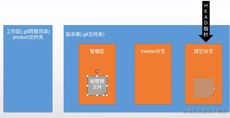 - 工作区:仓库文件夹中,除了.git文件夹以外的内容