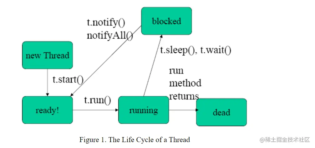 public static void main(String[] args) { //创建并启动线程Thread-0 new ThreadTest().start();// in runnable state //Thread-1 new ThreadTest().start(); for (int i = 0; i < 100; i++) { //打印main线程 System.out.println(Thread.currentThread().getName() + " " + i); if (i == 20) { //Thread-2 new ThreadTest().start();// in runnable state } } }}