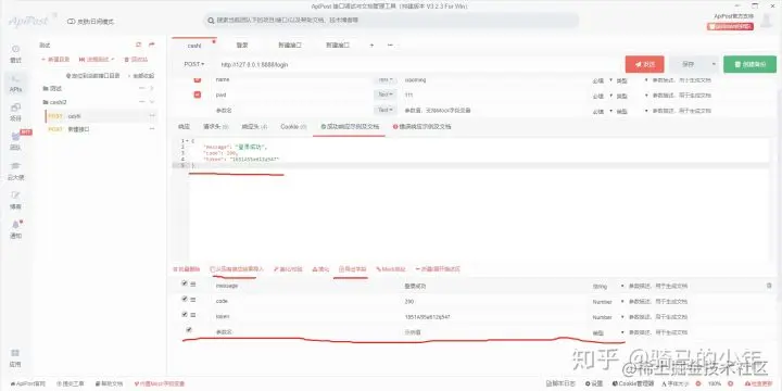 成功响应示例文档,我们点击从现有响应结果导入和导出字段,获得如图效果