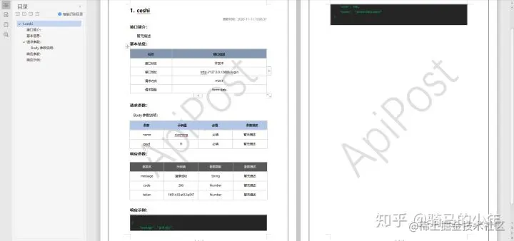 看一下word格式的接口文档效果(word只生成成功响应示例文档)