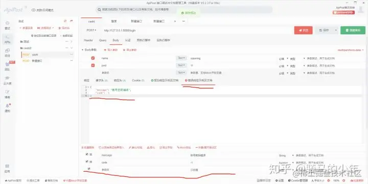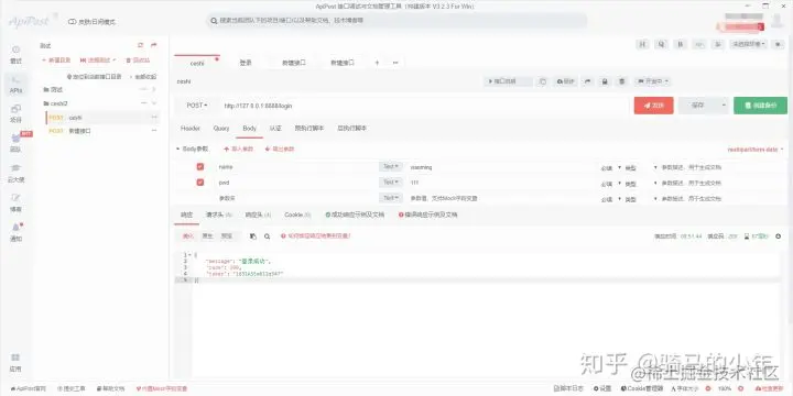 打开apipost编写一个登录的接口请求