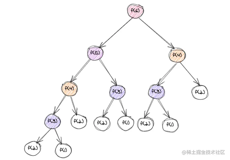 从图中,可以直观地看到,想要计算 f(5),需要先计算 f(4) 和 f(3),而计算 f(4) 还需要计算 f(3),因此,f(3) 就被计算了很多次,这就是重复计算问题