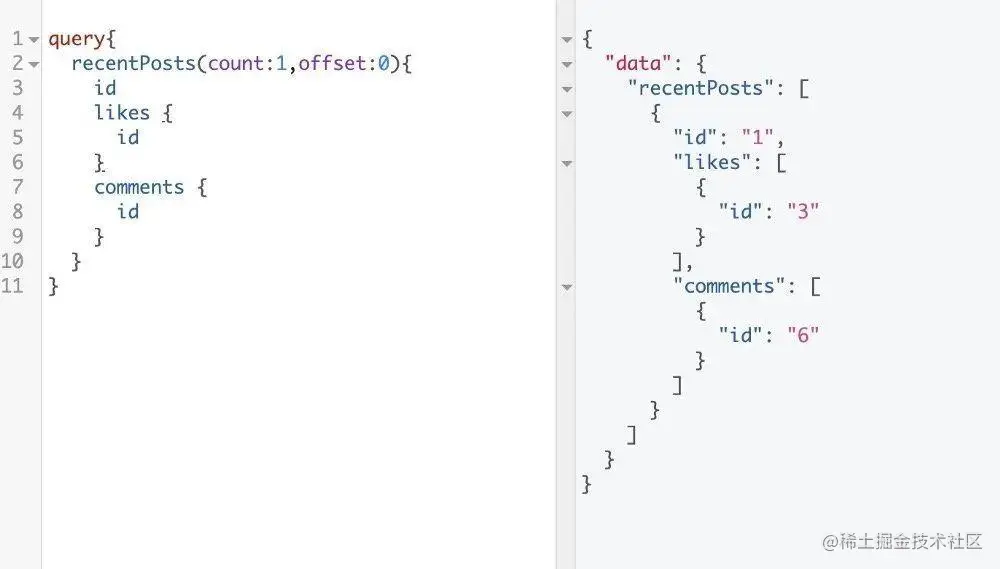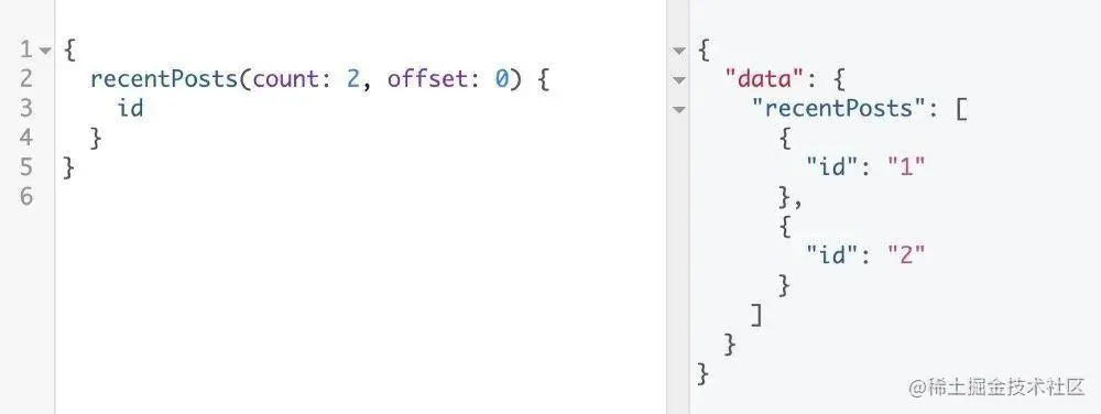 前端调用了 recentPosts 接口,并指明了只需要返回 id,所以,返回结果中只有 id 数据项。