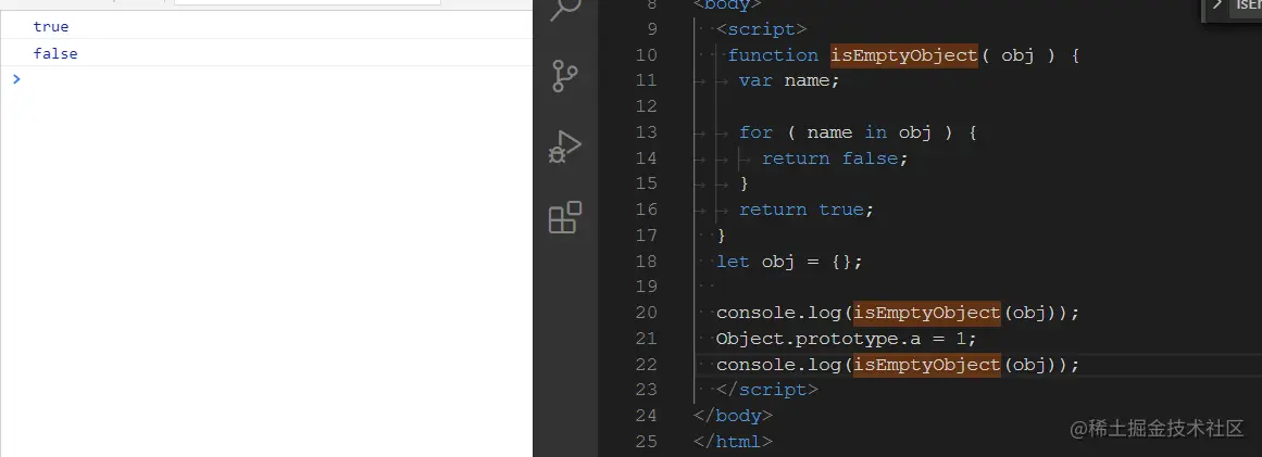 如图:我们是希望只要当前对象没有属性,则被判断为空对象,而不是原型上有对象也被认为不是空对象