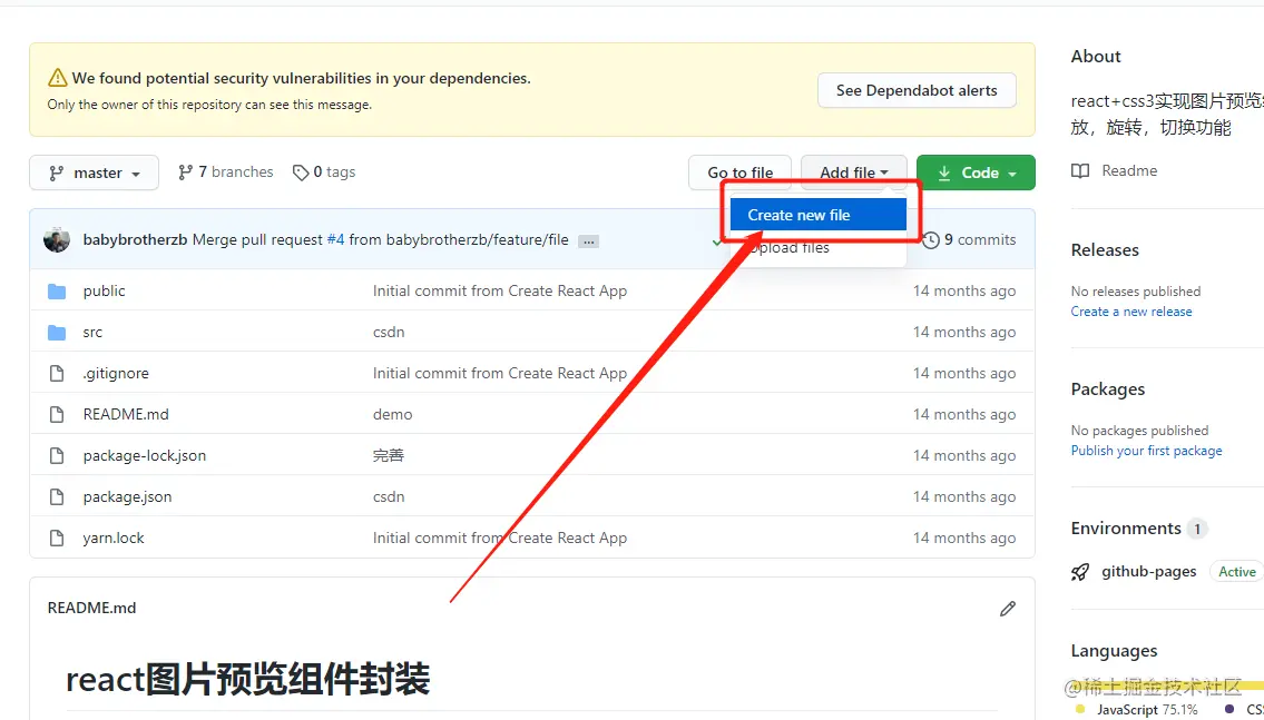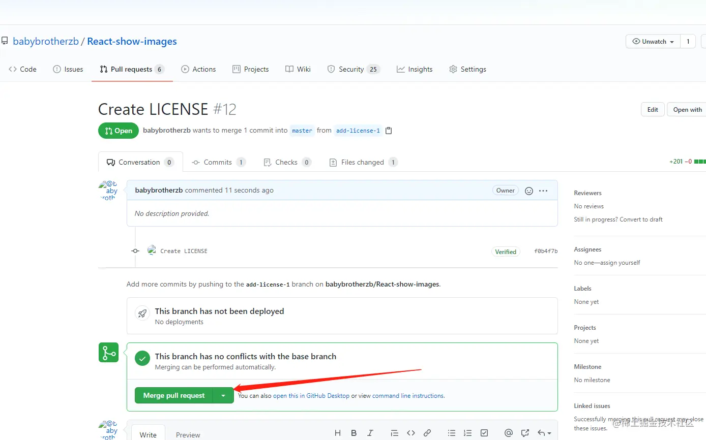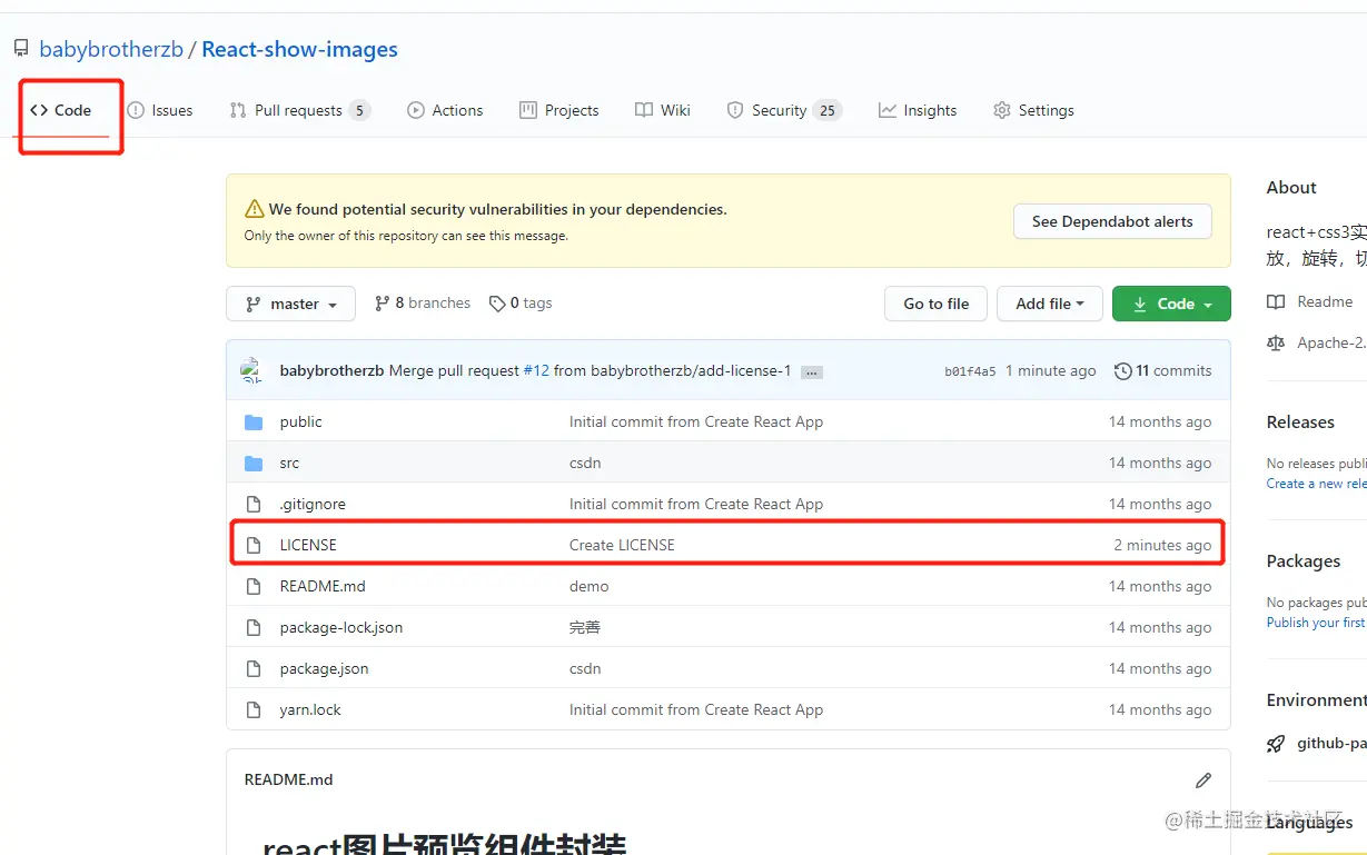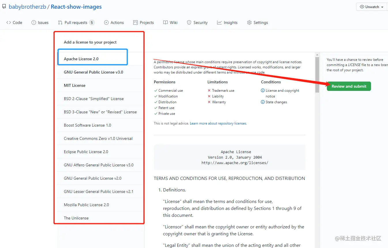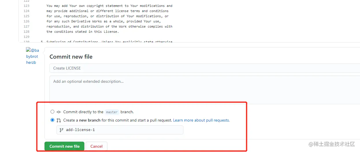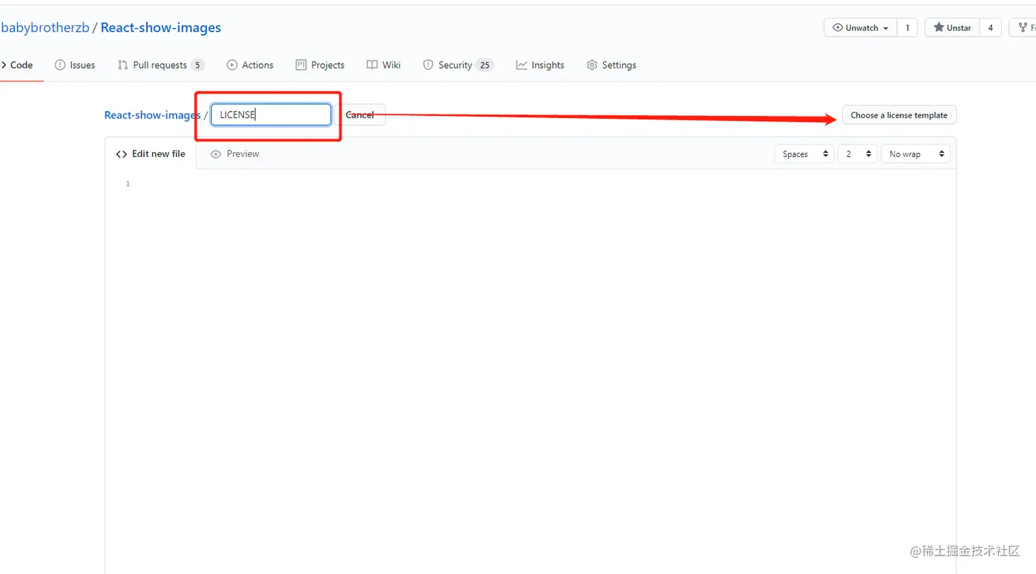 不管举报结果如何,反正对我没有造成什么实质损失,这恰恰暴露了我们的维权意识版权意识比较薄弱。 沸点也有小伙伴问我github 怎么搞开源授权,下面我就直接上图了,一步一步来。