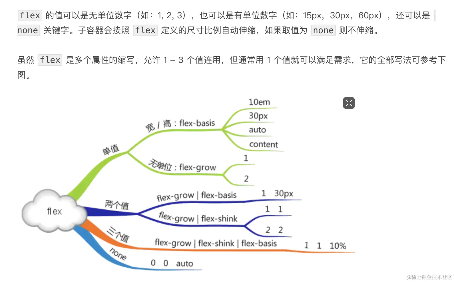 5. flex: flex-grow, flex-shrink 和 flex-basis的简写,默认值 0 1 auto,auto表示项目本身大小