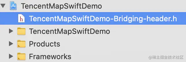 3、创建HeaderFile, 通常明明为"项目名称-Bridging-header", 即:TencentMapSwiftDemo-Bridging-header.h, 放在根目录(位置放在那里都可以, 区别只是路径不同):