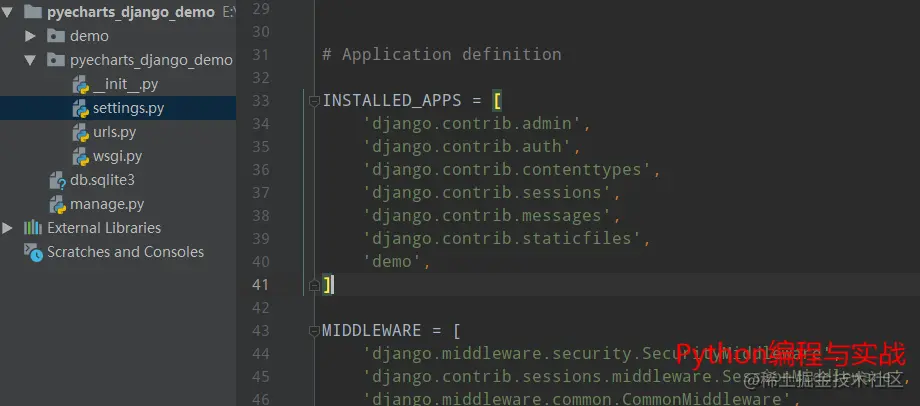 同时在 pyecharts_django_demo/settings.py 中注册应用程序