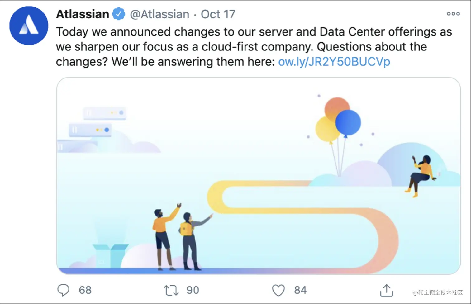 Atlassian CEO Scott Farquhar 在博文中也宣称:“我们宣布将对 Server 版和 Data Center 进行调整,以突出我们作为云优先(Cloud-First)公司的重点。“