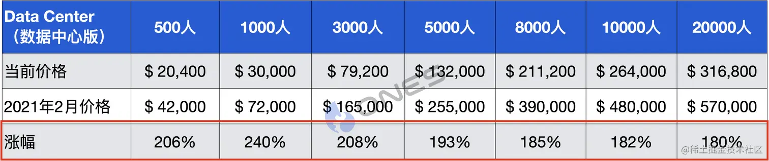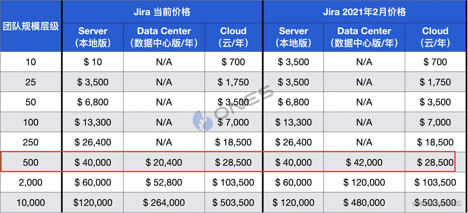 值得注意的是,Data Center 也仅对500人以上团队提供支持。这意味着500人以下的常规团队将被「强制上云」,订阅昂贵的 Cloud 版产品则是他们继续使用 Jira、Confluence 的唯一选择。