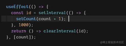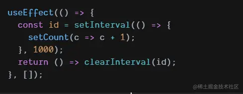 在effect 的依赖频繁变化的场景下有时也可以通过函数式更新状态来解决问题,例如一个每秒中自增状态的场景: