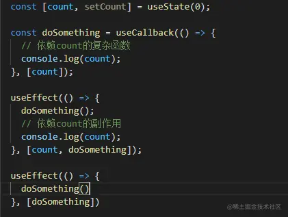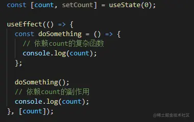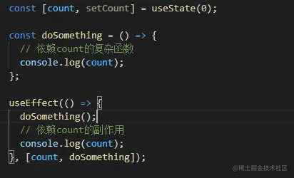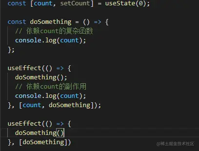 因为doSomething这个函数并没有被使用到多个地方,所以可以将它声明到effect内部去减少依赖项
