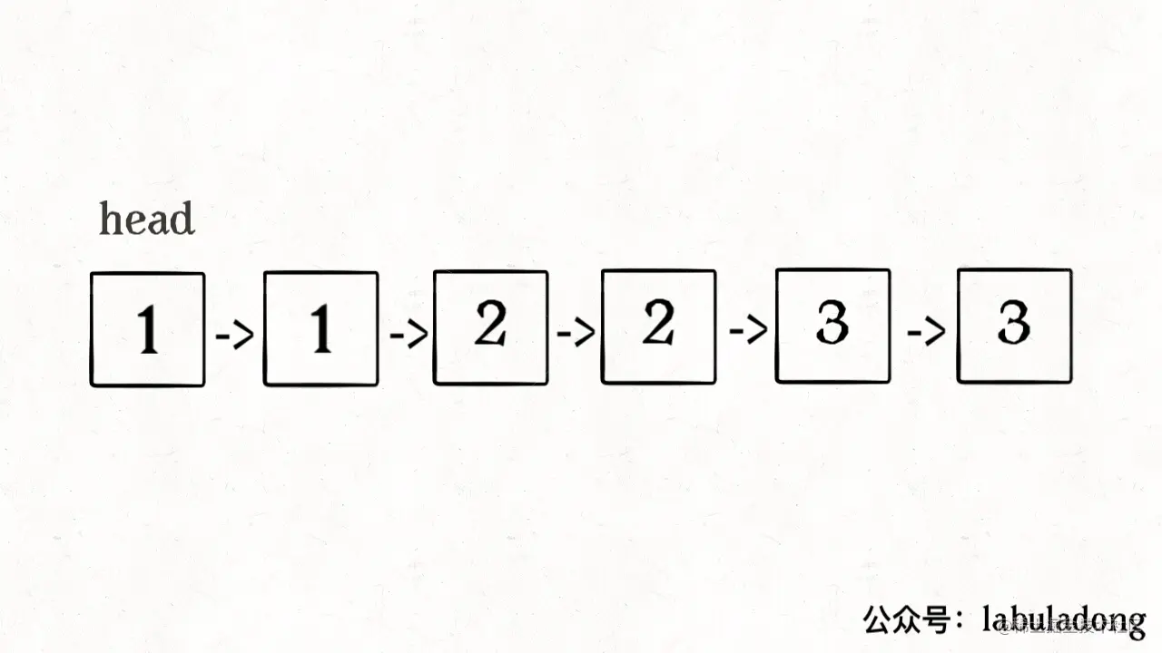 再简单扩展一下,如果给你一个有序链表,如何去重呢?这是力扣第 83 题,其实和数组去重是一模一样的,唯一的区别是把数组赋值操作变成操作指针而已: