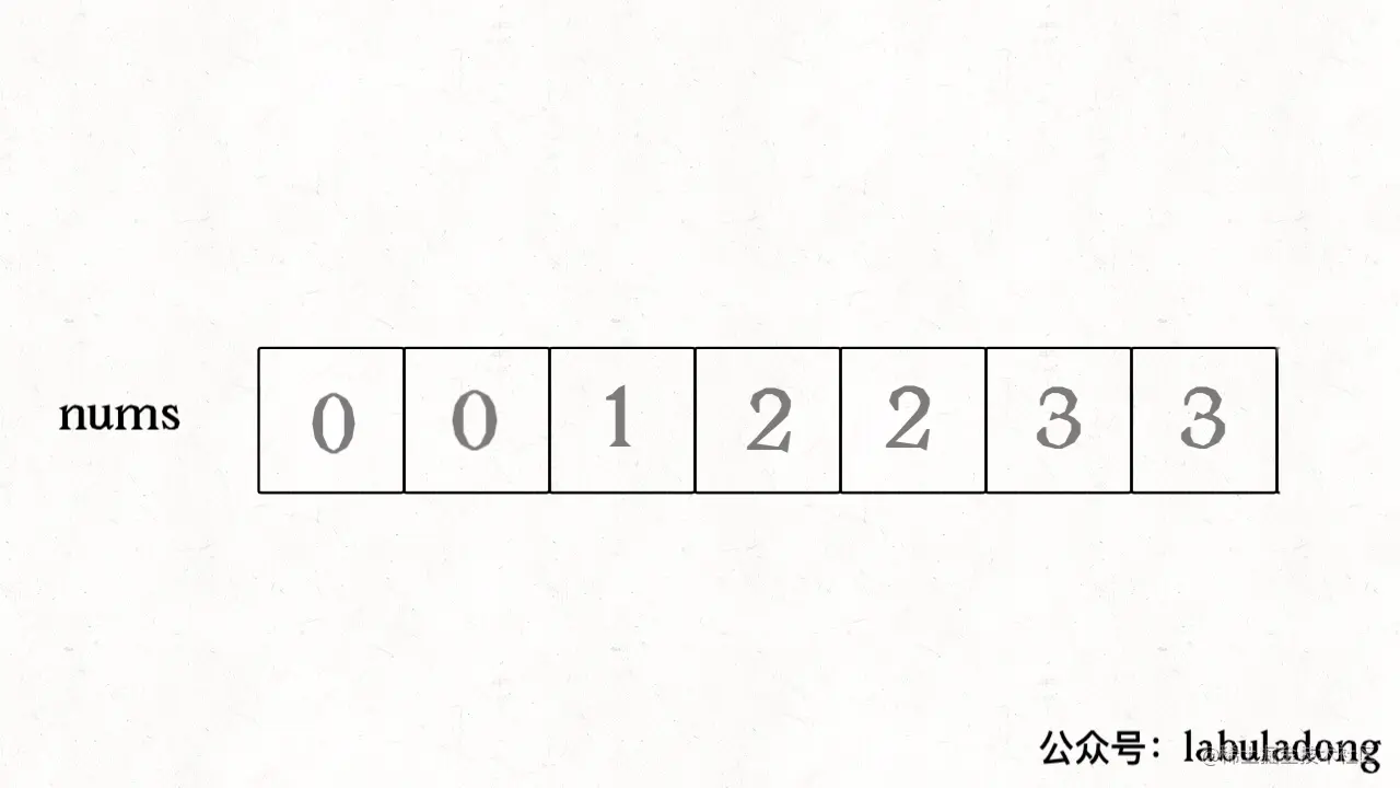这和前面说到的数组去重问题解法思路是完全一样的,就不画 GIF 了,直接看代码: