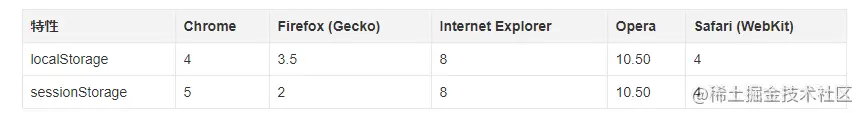 localStorage和sessionStorage的浏览器支持情况:
