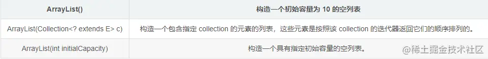 ArrayList类有三个构造方法: