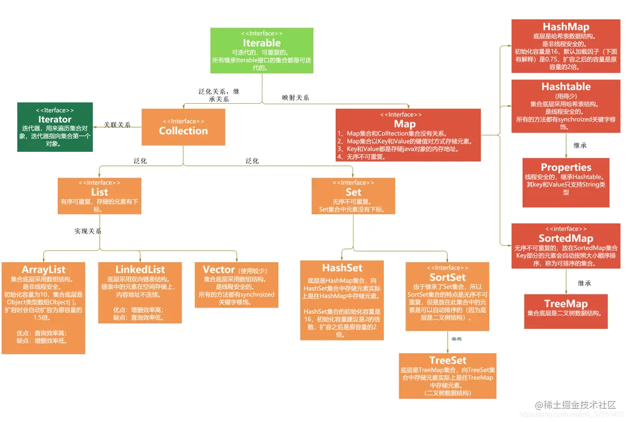 集合结构的继承需要熟练掌握。注意分清哪些是接口,哪些是实现类。