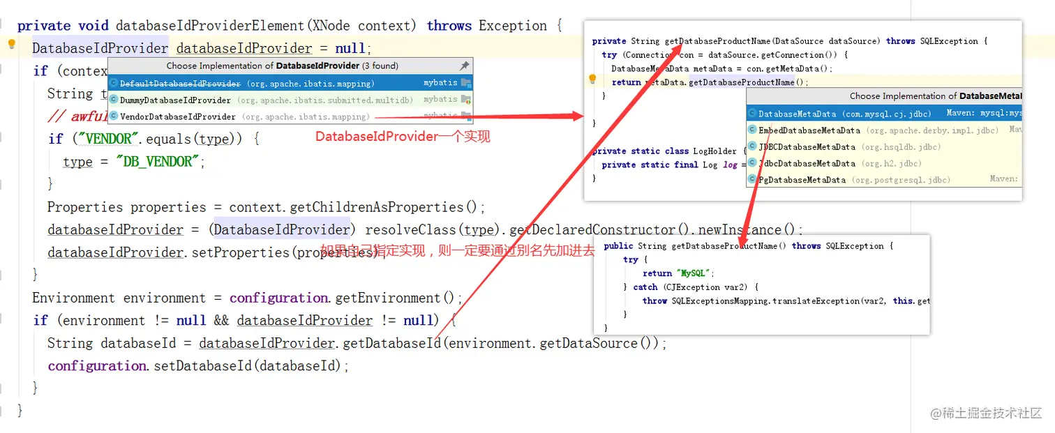 可以看到最终是返回一个字符串给到configuration的databaseId属性,同时我们也可以自己实现一个DatabaseIdProvider,不过要先在别名配置里面配置好。