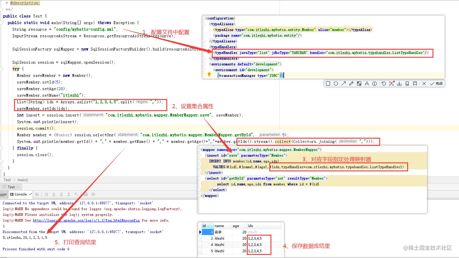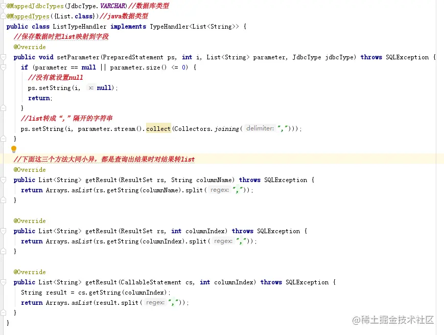 这里只是实现了集合映射到数据的处理器,有时候我们还可能使用到枚举到数据库的映射,有兴趣的同学可以去了解下,也是比较简单的。