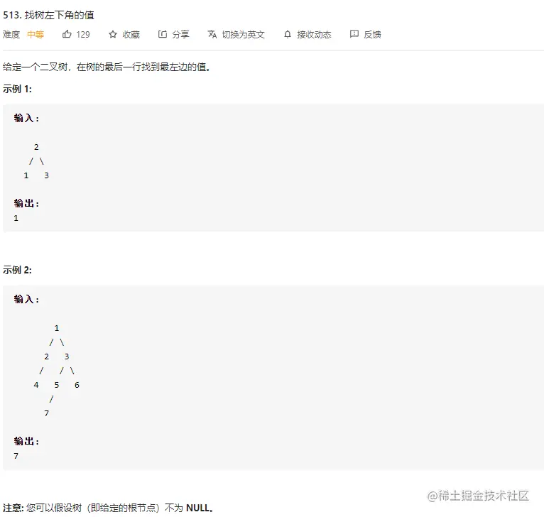 return nodes.back().front(); // 二叉树层次遍历最后一层的第一个节点就是树左下角的值