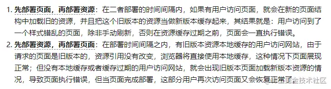 - 非覆盖式发布。先说下背景,目前我们小团队的单页面应用,静态资源部署的过程中,一般直接将静态资源拖到虚机上, 这种属于覆盖式发布,会有什么问题呢?如下