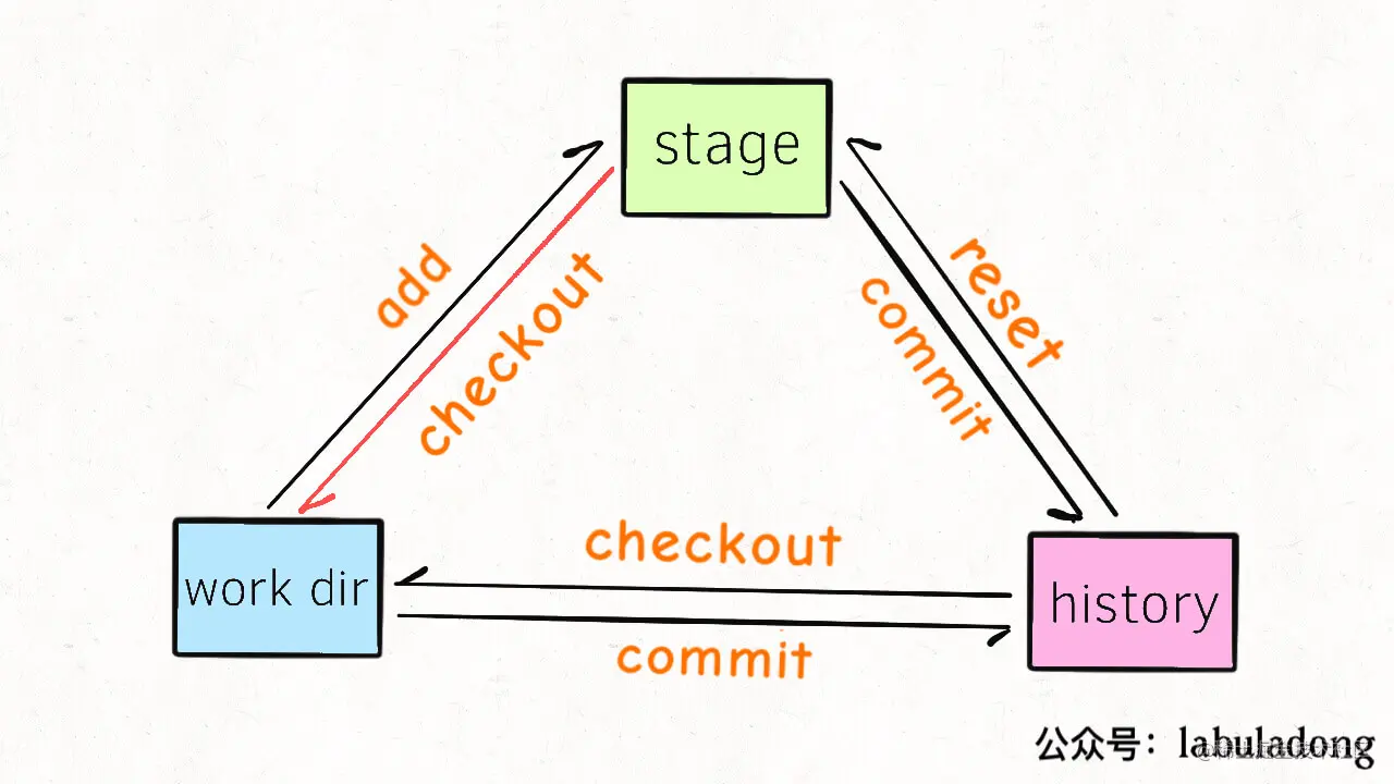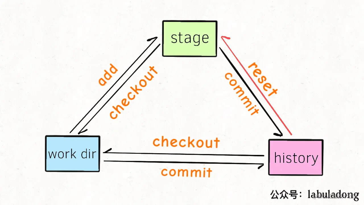 这个需求很常见,比如说我用了一个 git add . 一股脑把所有修改加入 stage,但是突然想起来文件 a.txt 中的代码我还没写完,不应该把它 commit 到 history 区,所以我得把它从 stage 中撤销,等后面我写完了再提交。