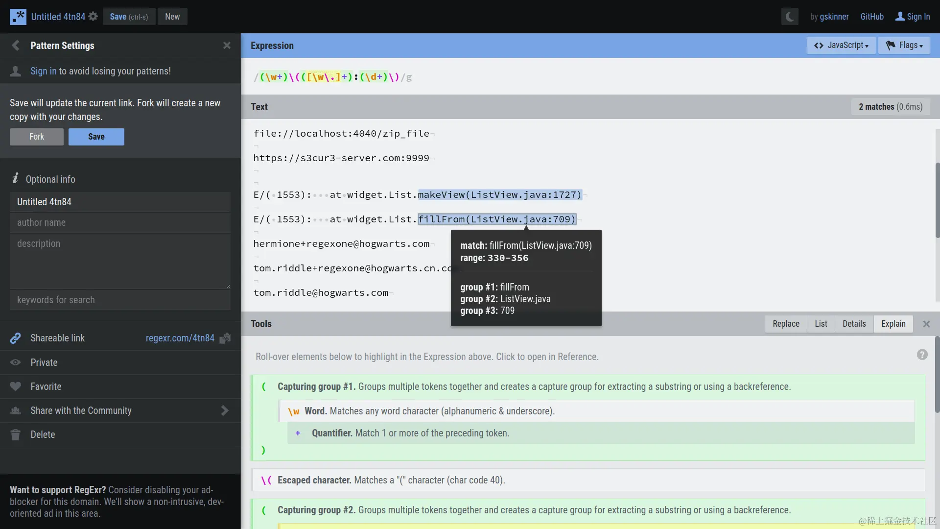 再说测试工具,是个叫做 RegExr 的 Github 项目,这是它的网站: