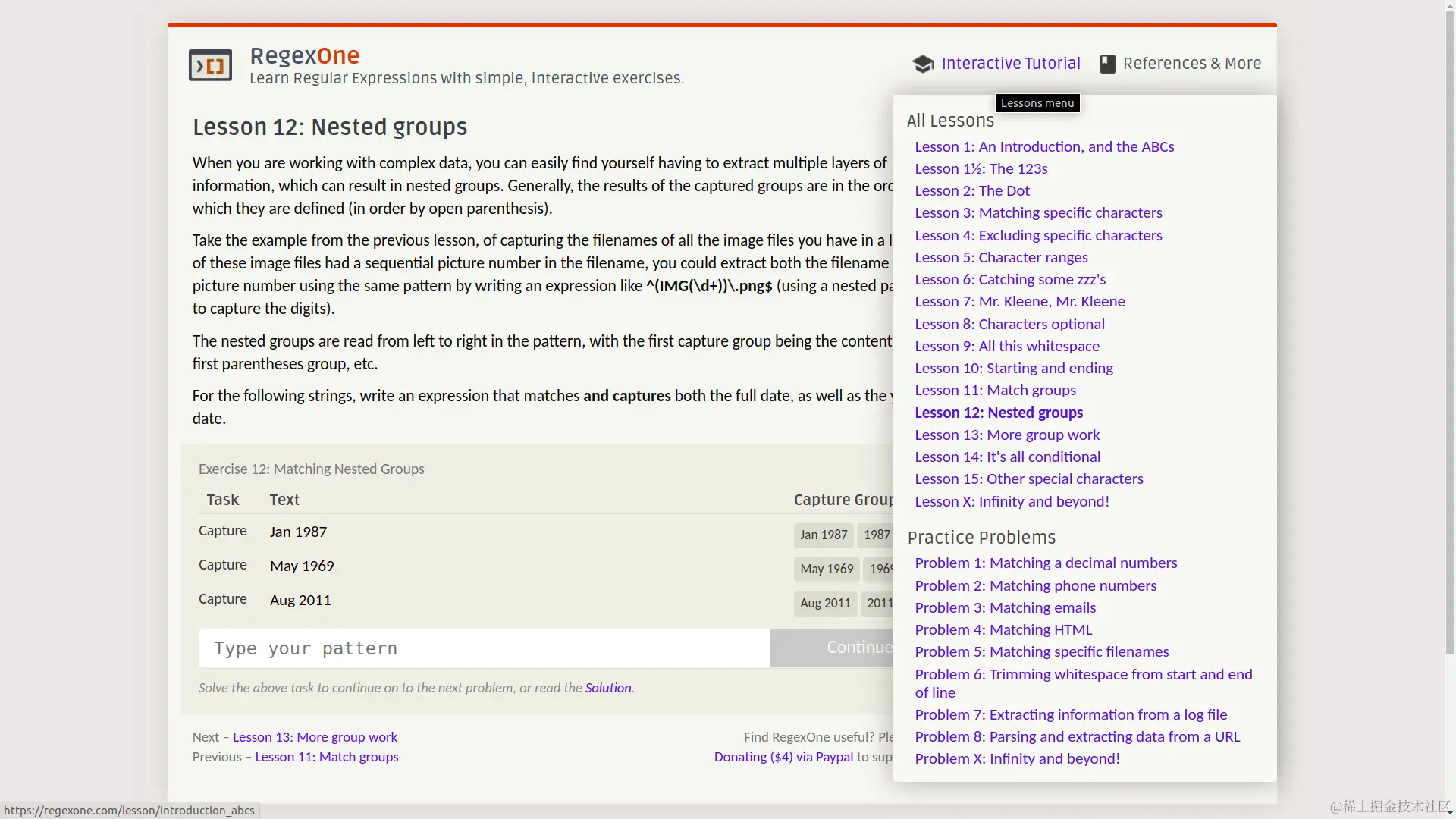 先说练习平台,叫做 RegexOne: