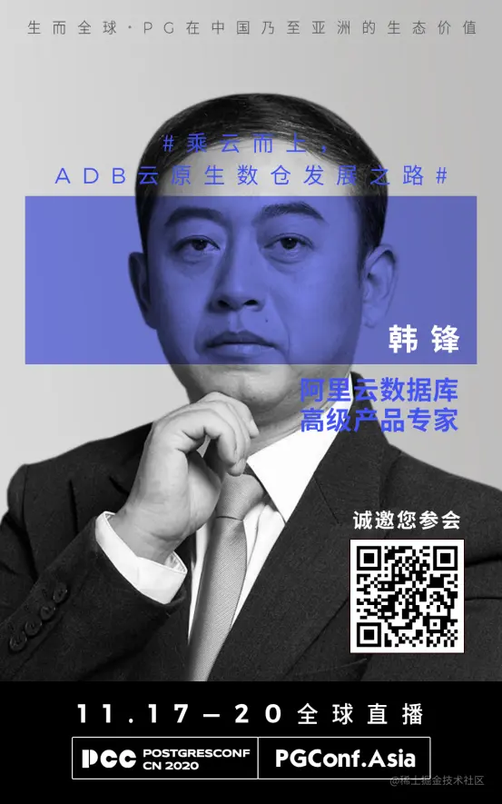 2020 PostgreSQL亚洲大会组委会特别推出嘉宾系列专访,本期我们邀请到了阿里云数据库高级产品专家韩锋。他将在11月20日主论坛频道16:10-16:50时间段带来《乘云而上,ADB云原生数仓发展之路》分享。