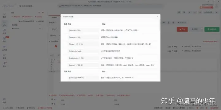 左下角有一个红色字体的内置mock字段变量,今天我们生成随机数据就是使用这个内置mock字段变量。