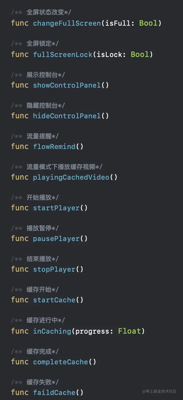 播放器 缓存|播放状态 相关则会通过代理方法进行回调,如有需要可进行实现: