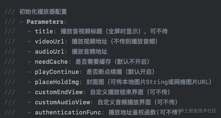 HYPlayerCommonConfig为需要传入播放器的唯一参数(可根据自己需求传参),具体配置如下: