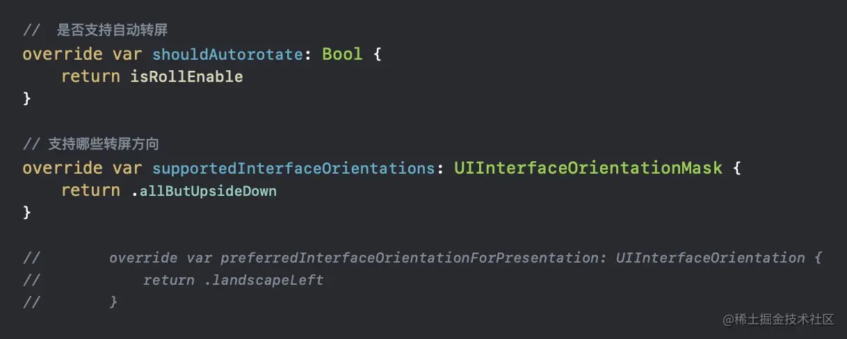 ️注意:在controller被UINavigationController或UITabBarController嵌套式,在这两个基础控制器也需要重写以下属性