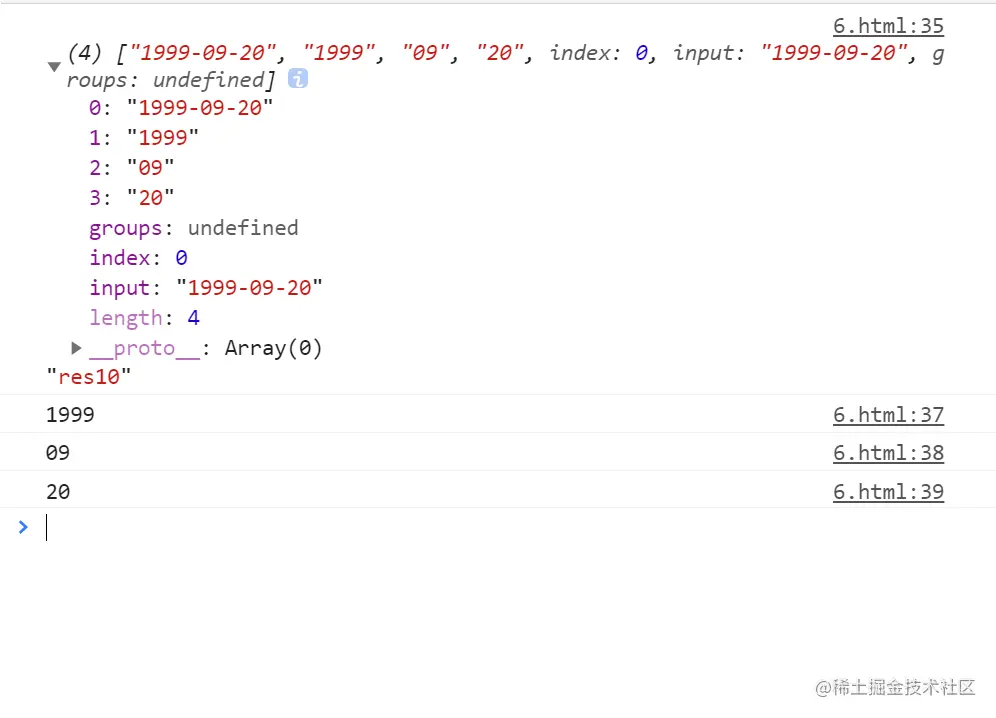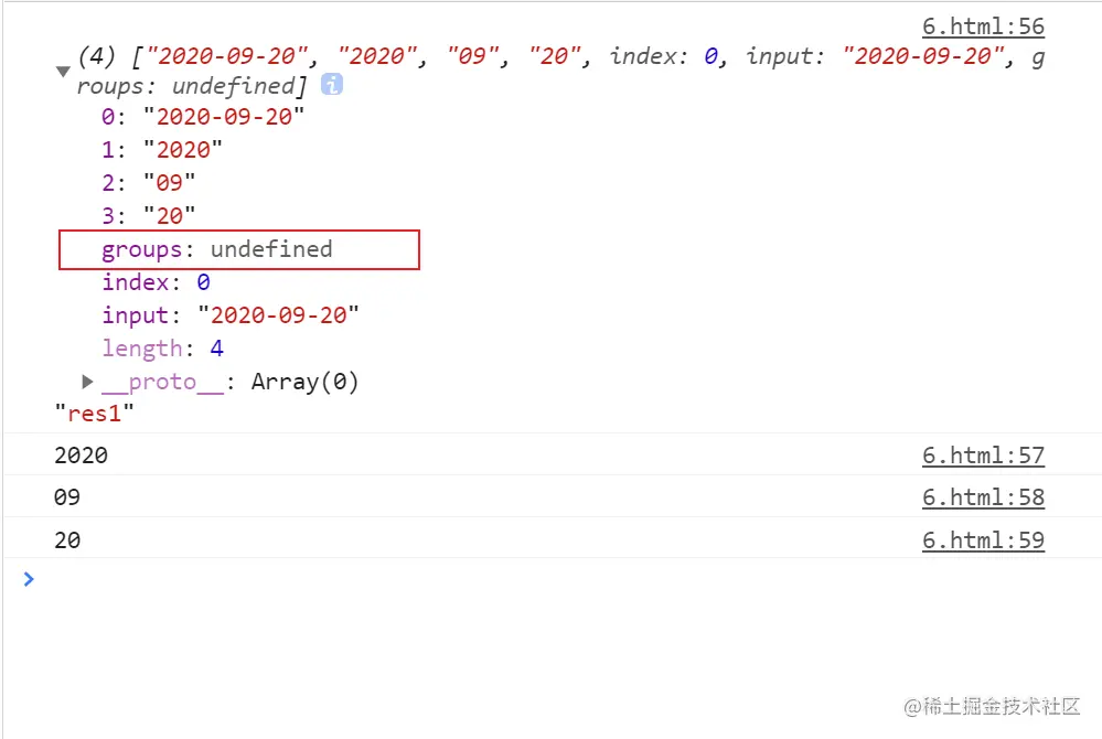 //["2020-01-06", "2020", "01", "06", index: 0, input: "2020-01-06", groups: undefined]