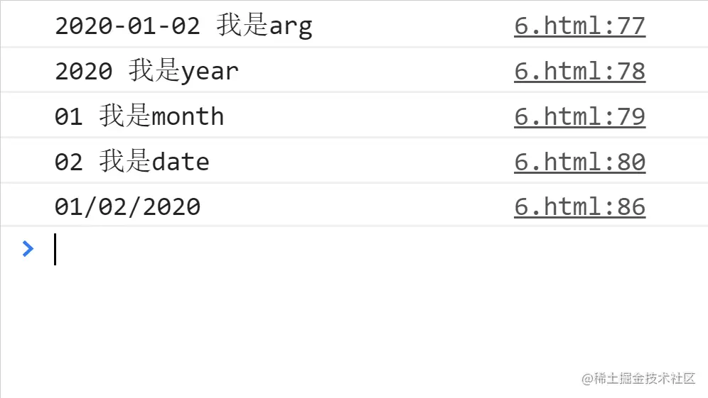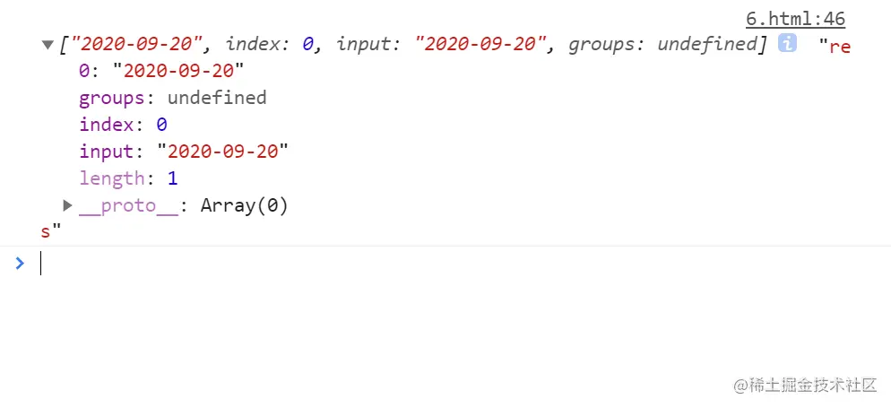 //["2020-01-06", index: 0, input: "2020-01-06", groups: undefined]