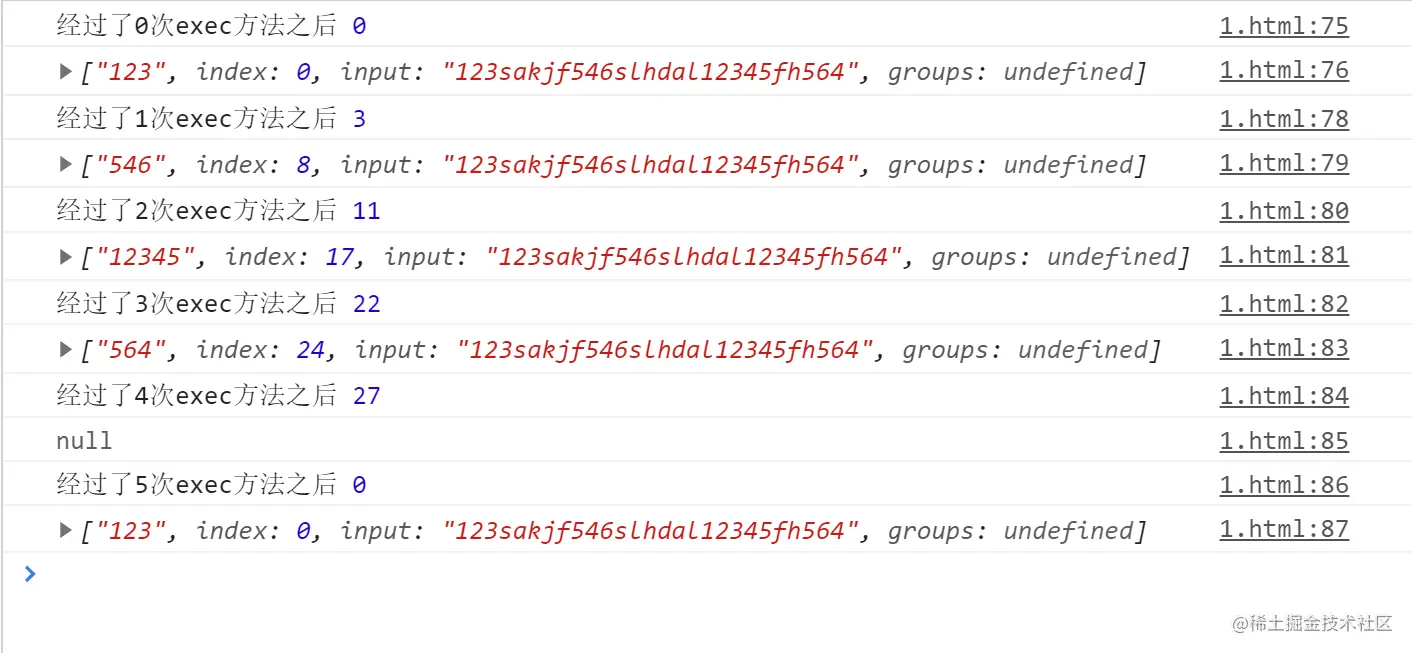 console.log('经过了1次exec方法之后',reg5.lastIndex) //3