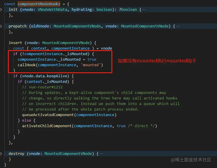 - 创建组件时插入的钩子insert src/core/vdom/create-component.js