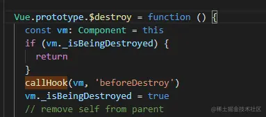 beforeDestory src/core/instance/lifecycle.js 先父后子