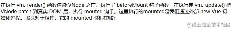 - 子组件执行mounted时机 执行patch时 src/core/vdom/patch.js