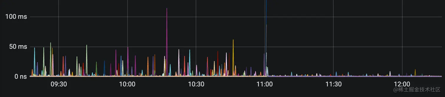 这些针对各种容器场景的优化效果非常显著,以第 3 点为例,ping 时延监控效果图如下 (11:00 之后是优化后):