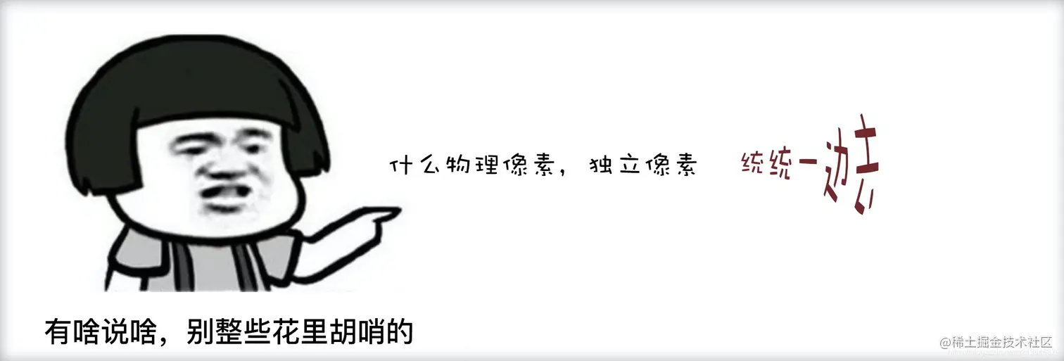 这篇文章讲得会比较简单直接,如果想要更加深入的了解,以及想知道为什么会有物理像素,像素比之类的概念,以及它们对于移动端的影响,期待下一篇