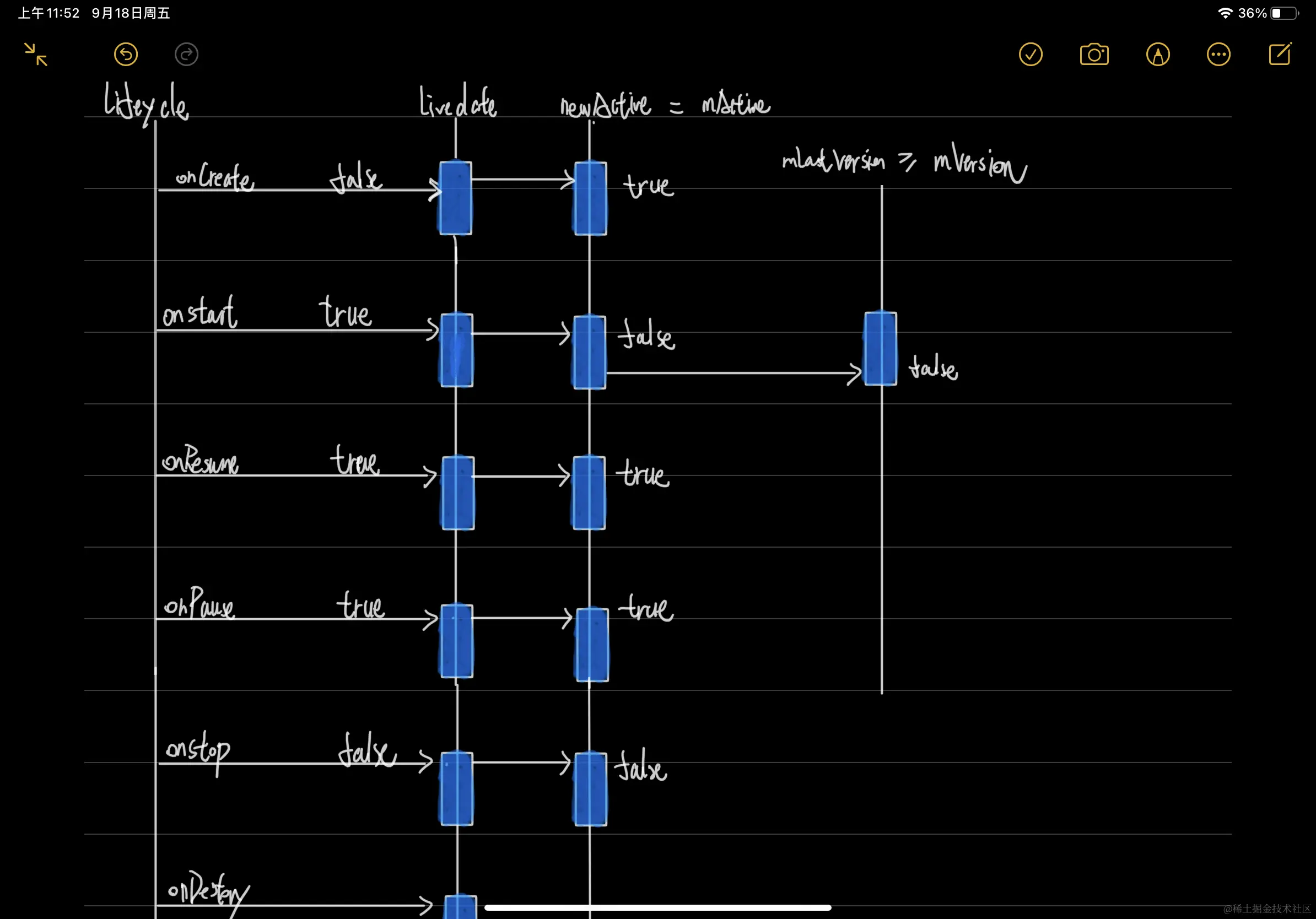 在上面分析LiveData 如何通知发送数据变化的时候,有下面的方法,这方法有一个细节,判断了是否是在激活状态,如果不是激活状态就不执行change