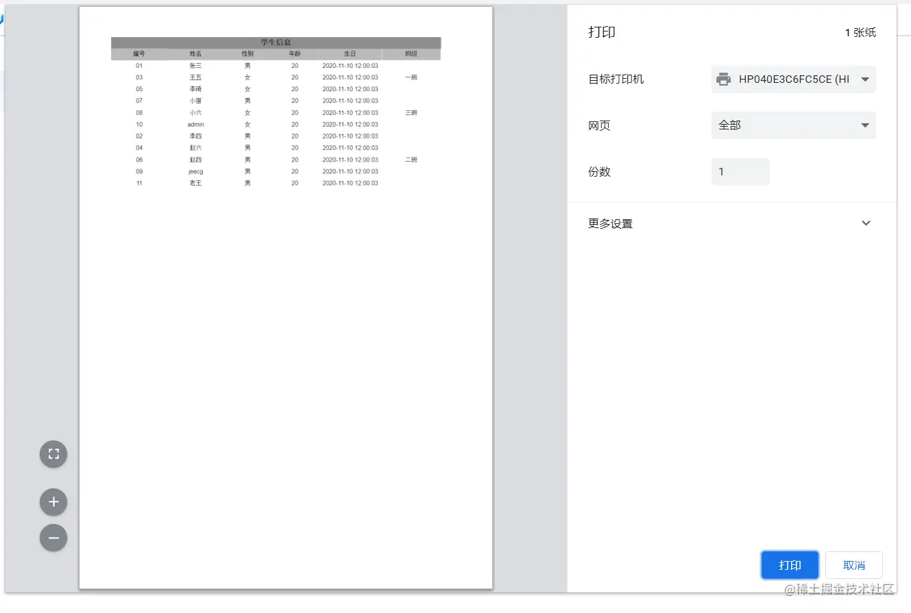 2)点击“打印”按钮,选择“打印当前屏”或“打印全部”,进入打印预览界面