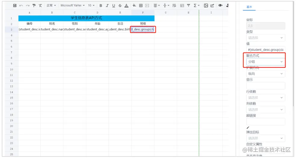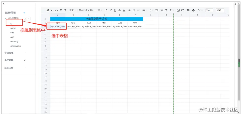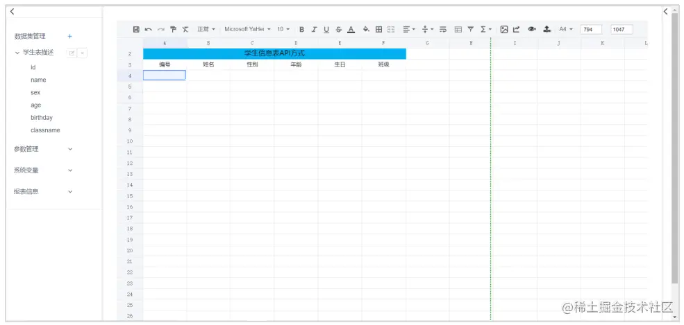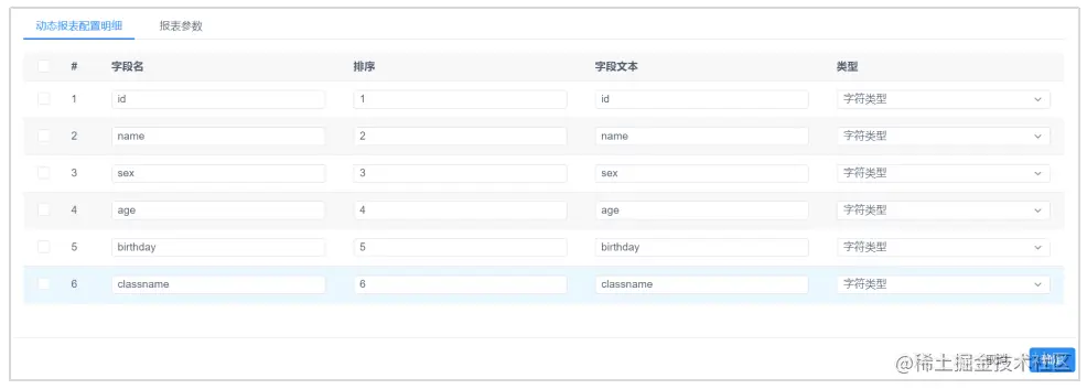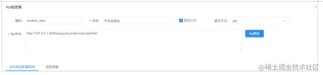 5、填写完成后点击API解析会出现下图(动态报表配置明细)