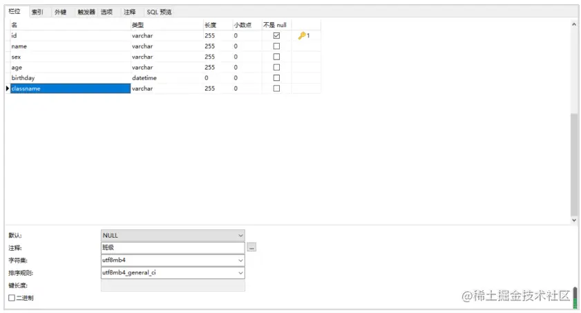 - 字段文本:该字段对应的文本(如 name 学生名称)